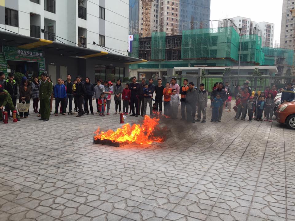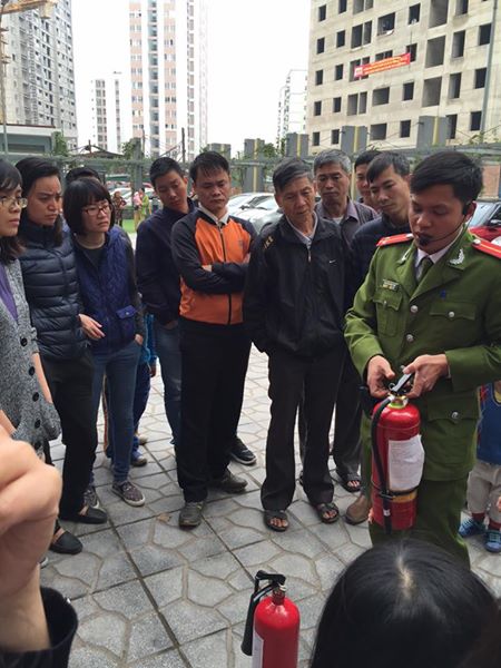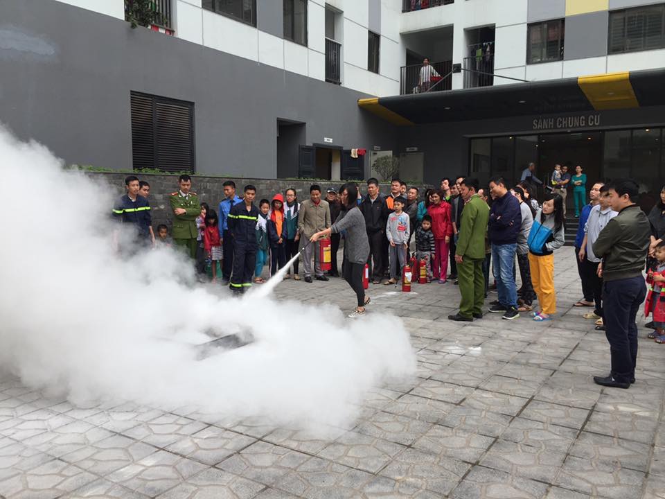 Sau buổi học lý thuyết, các cư dân đã được thực hành cách sử dụng các phương tiện bình bột, bình CO2 để dập tắt đám cháy và cách thức xử lý nhanh các tình huống có thể xảy ra. Thực tập phương án chữa cháy phối hợp cùng với đội chữa cháy chuyên nghiệp Công an phòng cháy và chữa cháy Số 8 Công an TP Hà Nội.